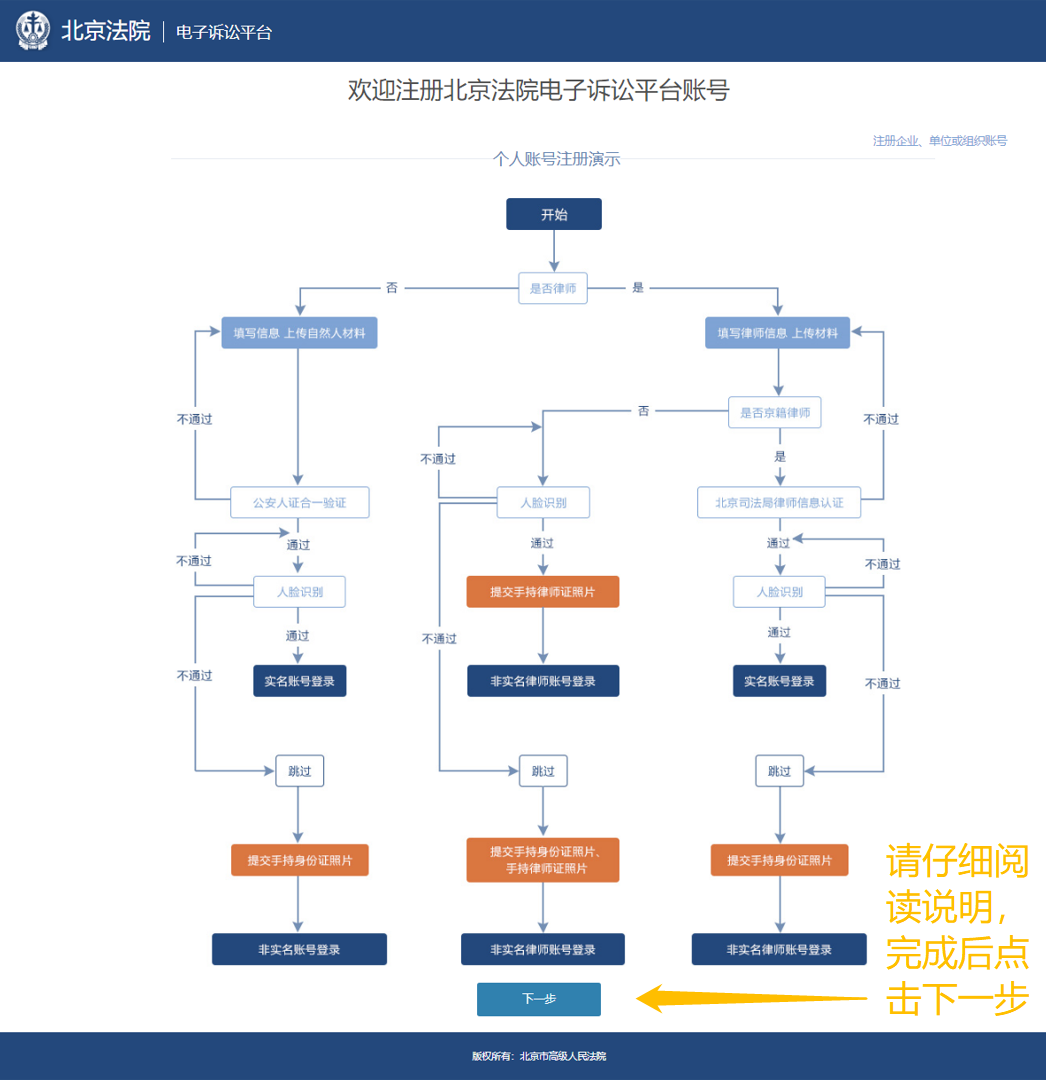 3.根据个人情况选择注册类别,并阅读注册流程说明,点击【下一步】。