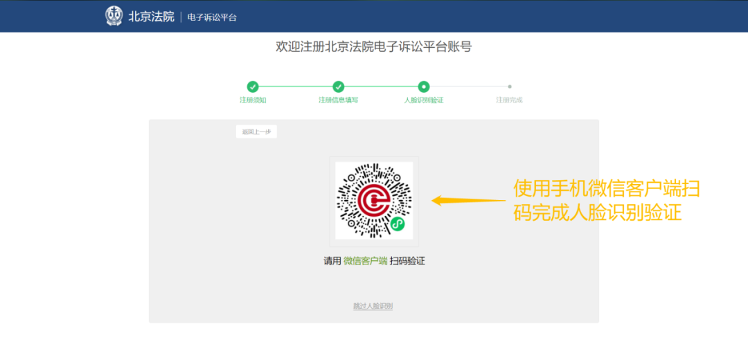 5.使用手机微信客户端扫码完成人脸识别验证。