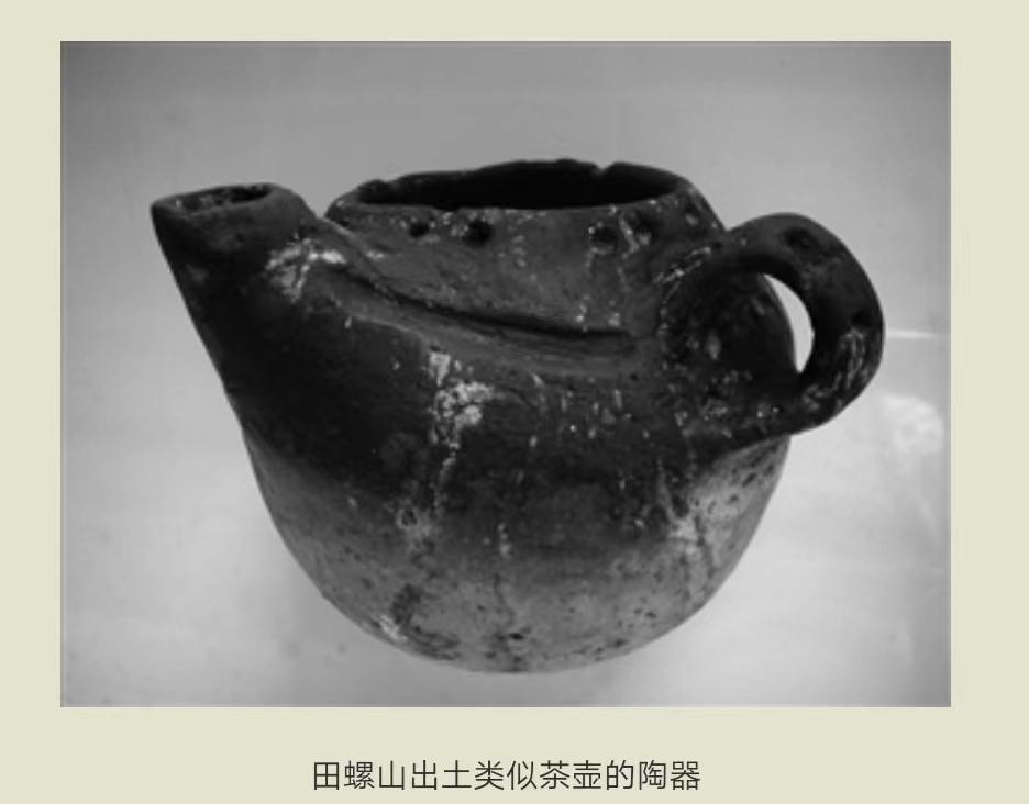 中国是茶的故乡,为世界所公认。2004-2008年,在浙江余姚田螺山遗址考古中,发现了位于干栏式木构房屋附近大片原生密集树根,且有明显的人工开挖的浅土坑,伴有出土的茶壶状陶器。经中外专家切片检测和陶器特征确定这批树根为茶树根,据碳14测定距今6000多年,是迄今为止我国境内考古发现的最早的人工种植茶树的遗存。也就是说,早在6000多年前生活在浙江田螺山一带的我国先民们就开始了种茶、制茶和饮茶,比“茶之为饮,发乎神农”的历史早了足足1300多年。