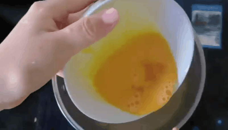 淋蛋液时一定要边淋边搅拌,这样做出来的蛋花才能更漂亮。