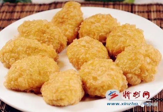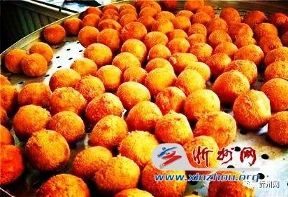 豆腐丸子是五台县的特色美食,虽做法简单但很费功夫,将豆腐块打碎,加入花椒粉、盐等调味品,搅拌均匀,手动搓成圆形丸状(取团圆美满之意),上锅蒸3分钟,当然为使其有一身华丽的外表还需要上色,把豆腐放入笊篱,用糖水通体浇灌,既美观大气又无任何添加剂,最后把准备好的丸子放入油锅内,炸制金黄出锅。逢年过节贵客临门,这是必须招待的重磅佳品,没有这个就感觉热情不够、招待不周。