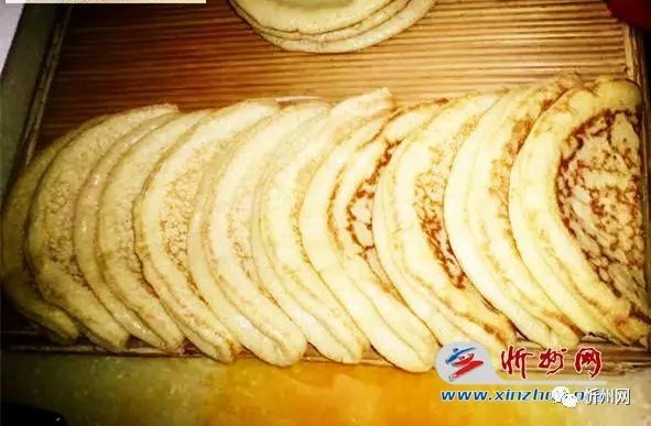 围绕在五台烩菜捧月中心的还有众星,主食有炖油糕、厚煊子、包豆渣馅的莜面饺子、米面做成的摊饭,还有一种老少皆宜的美食砍三刀。砍三刀属于油食儿,色泽金黄、外焦里嫩、口感酥脆、香气浓郁,原料为糕面(糜子)、玉米面、白面三种按一定比例,发酵后放入油锅炸,再上锅气蒸,十分钟后绵甜利口的面食小吃大功告成。现在讲究细粮精做,加入粗粮的比例没有以前那么多,所以如今三刀的印迹明显的只是外形,名字却一直沿用至今,是五台人的记忆味道。