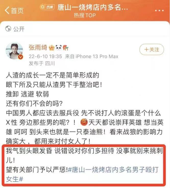 甚至连艺人张雨绮也发微博指责围观的男性是“推卸、逃避、软弱”,并建议中国男性都去服兵役。