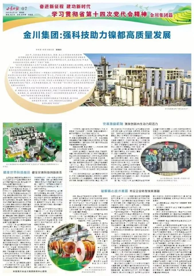 原标题:《甘肃日报丨金川集团:强科技助力镍都高质量发展》