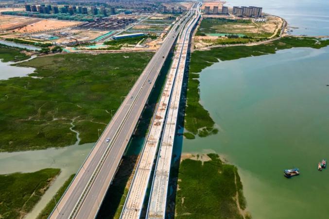 厦门地铁3号线4号线通过两座680米长的高架桥跨越大嶝海峡。(王雄耀 摄)