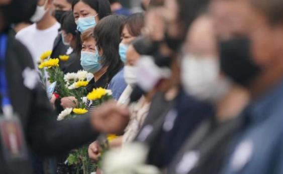 早上9点50分,追悼会开始。所有人摘帽致哀。