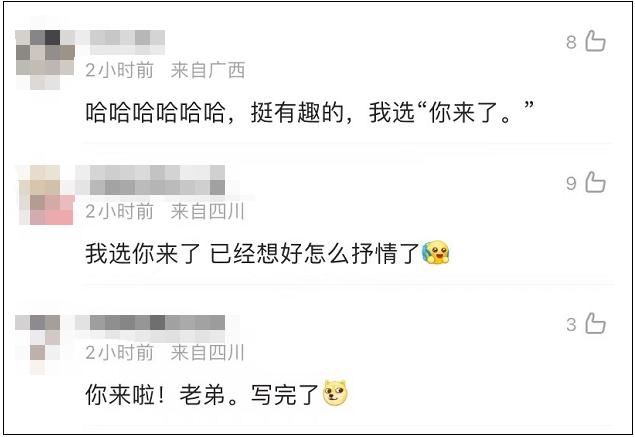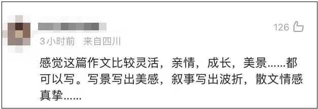6月13日上午,成都中考语文科目的考试结束以后,据成都石室联中考点、锦西中学考点和七中育才学校(水井坊校区)考点的考生介绍,今年成都中考作文题给了三个句子,分别是:“你来了。”“你来吗?”“你来啦!”任选其中一个句子作为开头,写一篇不少于600字的作文,题目自拟。