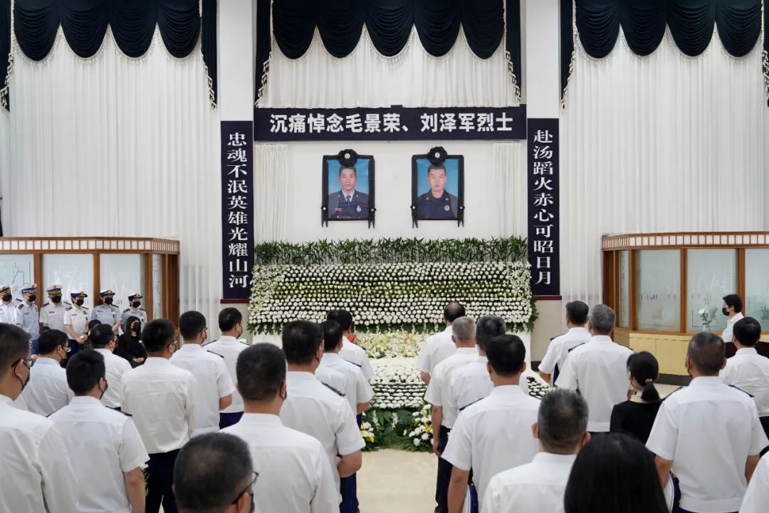 应急管理部消防救援局总工程师周天和杭州市委常委、副市长陈瑾,当地消防救援人员代表、毛景荣同志家乡浙江省遂昌县有关政府领导、刘泽军同志家乡山西省方山县有关领导、亲属、新闻媒体代表及自发而来的社会各界人士参加告别仪式。