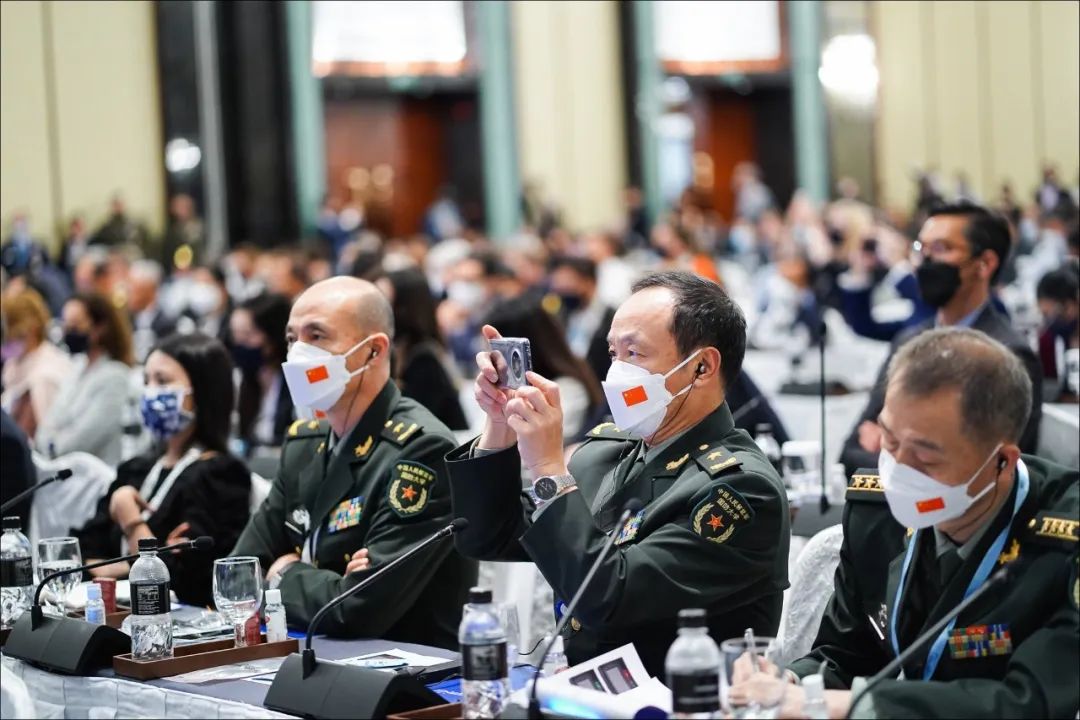 参加本届对话会的中国军方代表团也出席了泽连斯基的演讲环节,并未离开。