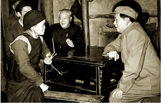 1958年3月16日傍晚,成都会议期间,毛泽东视察成都近郊郫县合兴乡红光高级农业合作社,与社员温大娘拉家常