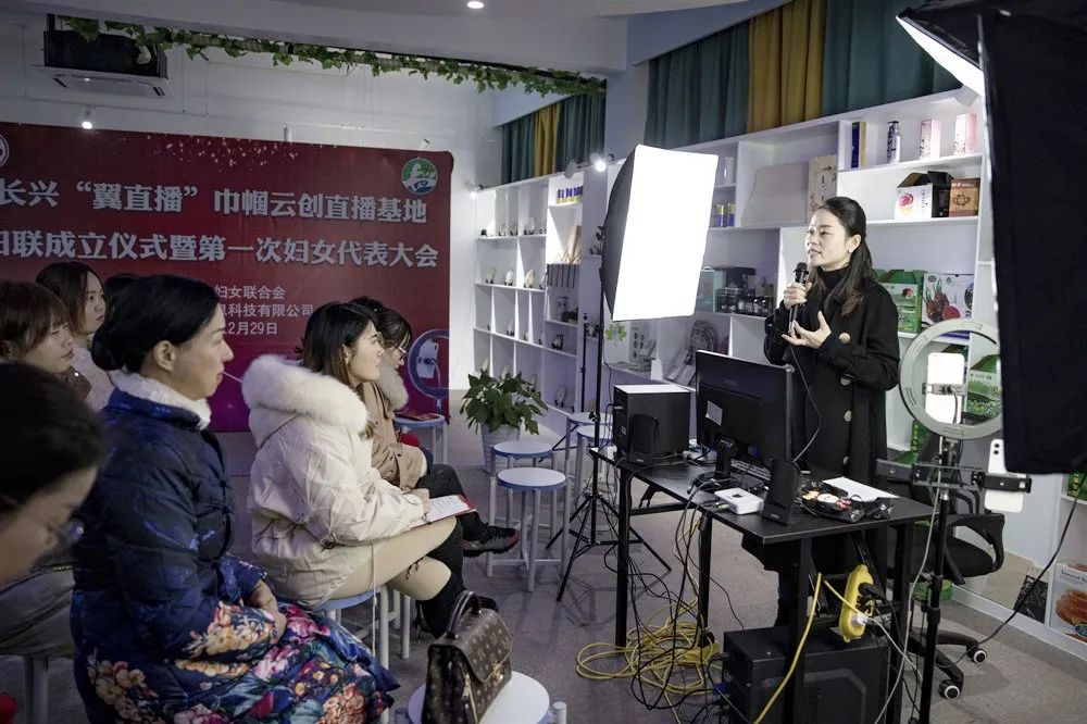 随着女性主播数量的持续增加,在县委统战部、县妇联的指导下,抖翼直播园又成立了全县电商主播产业第一个妇女组织——翼直播巾帼云创直播基地妇联。“下一步,将会把服务基地妇女群众作为重心,以创业孵化基地为依托,引导更多女性抢抓机遇,在云端经济领域创业创新。”长兴县新联会网络新媒体分会秘书长、浙江抖翼信息科技有限公司副总裁钱国凤表示。