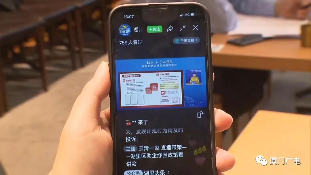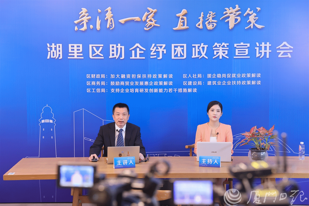 此次直播带策活动中,湖里区领导干部围绕财政、人社、商务、建设、税务、工信等6个方面政策规定、操作流程、咨询热点等,为大家答疑解惑。