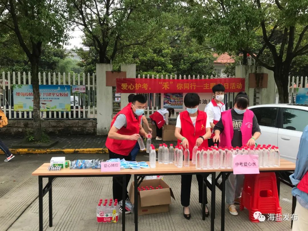 为保障中考顺利进行,不少志愿者来到考点为考生们提供暖心服务。今天一大早,通元镇禾溪社区和社会工作站的志愿者就来到通元中学考点门口,开展爱心护考,“禾”你同行主题党日活动。爱心护考摊位为考生们准备了矿泉水、文具、医用口罩、应急降暑药品等。志愿者们向有需要的考生送上矿泉水,并协助维持考点周边以及校门口秩序。“考虑到个别考生可能忘带准考证等物品,我们还自发组织了绿丝带爱心车队,为考生保驾护航。”通元镇禾溪社区党支部书记郭燕表示。
