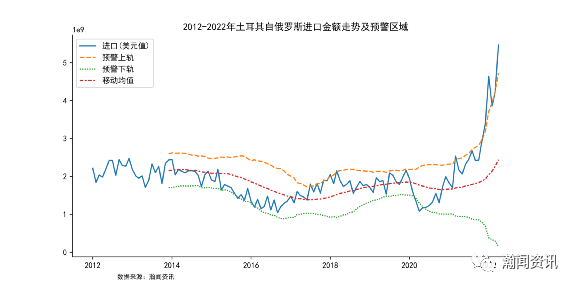图1 2012-2022年土耳其自俄罗斯进口金额走势及预警区域