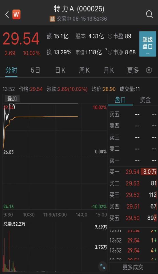 受利好消息提振,6月15日,特力A再次涨停,实现在15个交易日内录得11个涨停。截至发稿前,每股报29.54元,创年内股价新高,与5月25日收盘13.46元/股价相比,区间涨幅超141%。