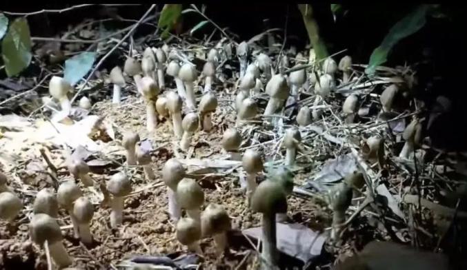 一从化市民拍下了夜采荔枝菌的视频。(截图,不建议野外自行采摘食用。)
