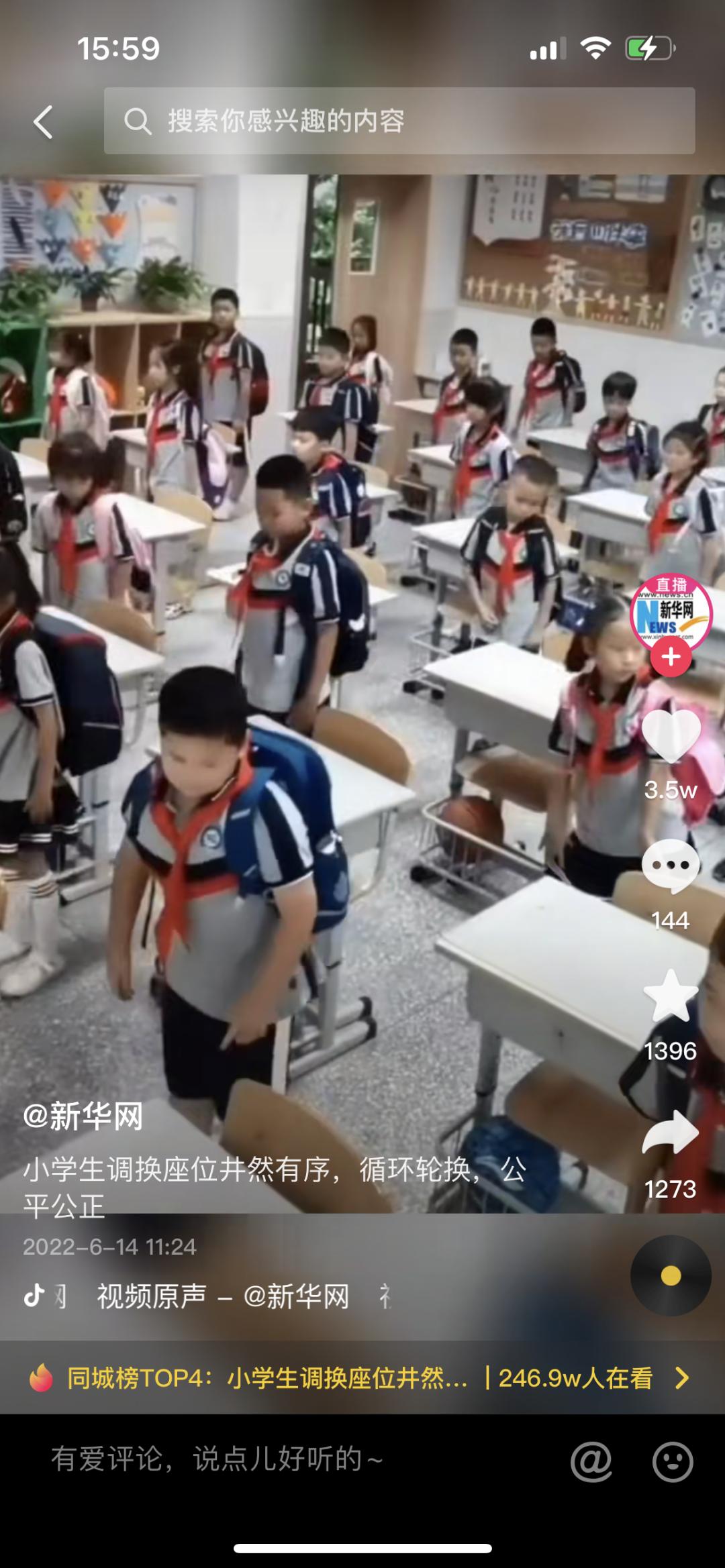 一群小学生,整齐划一地把换座位的动作演绎成了一段教科书式表演,前后左右轮换,不仅不杂乱,简直是军事化动作。