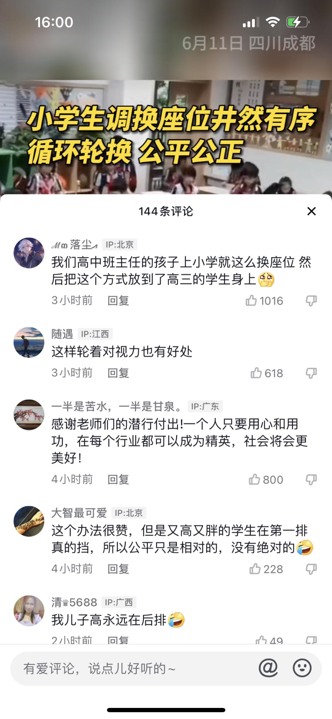 不如把这些事情录制成视频,让家长看得见,让家长放心。而前后排轮换,也是一种公平的体现。