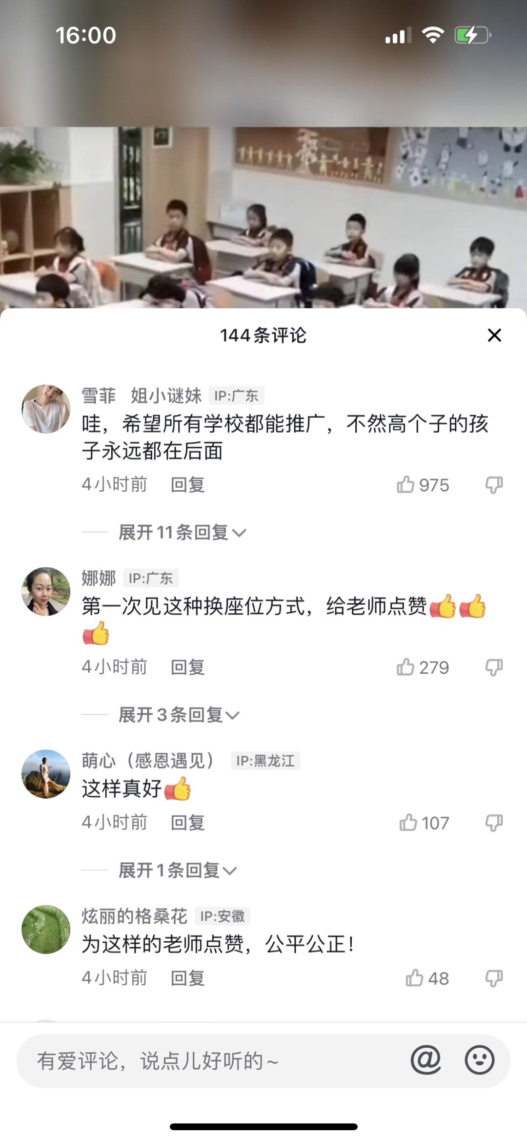 据唐甜甜介绍,换座位的初衷其实是为了实现教育的公平。