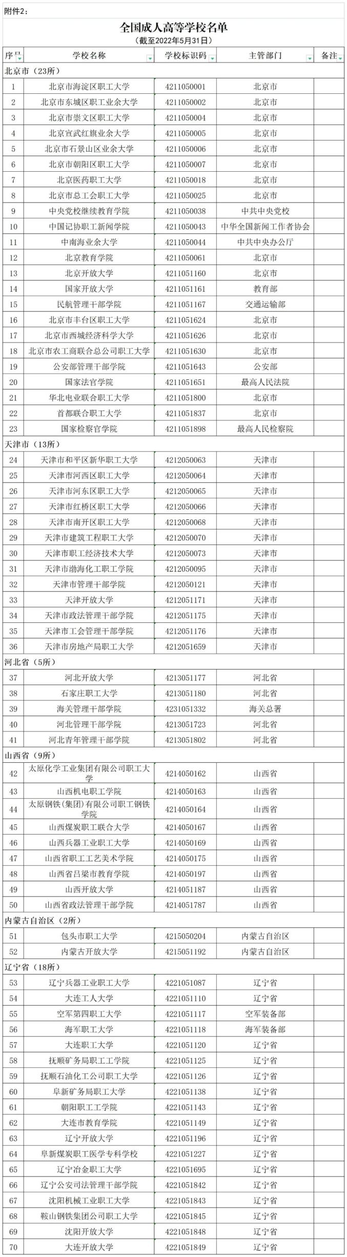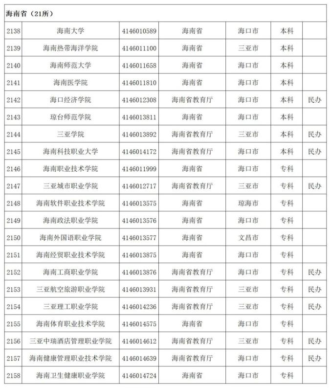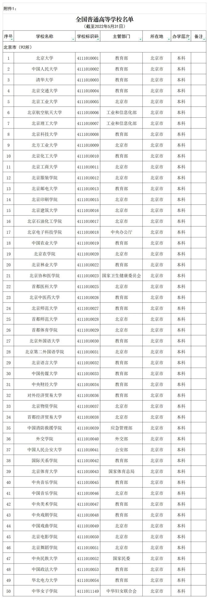 6月17日,教育部正式发布全国高等学校名单。截至2022年5月31日,全国高等学校共计3013所,其中:普通高等学校2759所,含本科院校1270所、高职(专科)院校1489所;成人高等学校254所。该名单未包含港澳台地区高等学校。