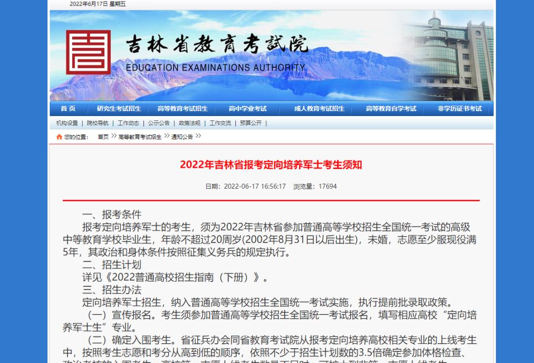 原文标题:2022年吉林省报考定向培养军士考生须知