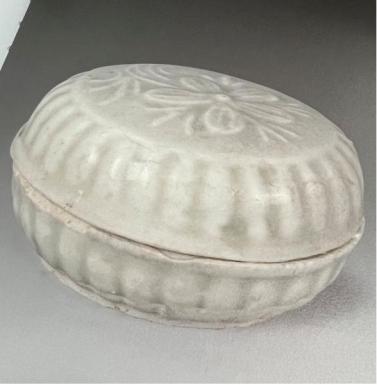青白釉菊瓣形瓷粉盒