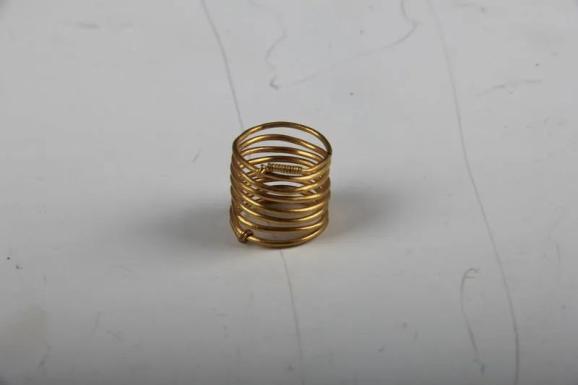 宋代聘礼必备“三金”:金戒指、金手镯、金帔坠。市博物馆馆藏之一的金指镯,指镯头用粗丝缠作活环,与下层的连环套接,可以左右滑动来调节松紧。