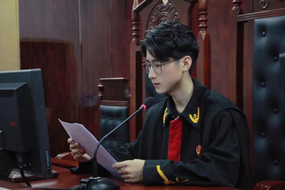 身着法袍、手执法槌