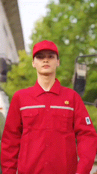 石油学子穿上红色的工服