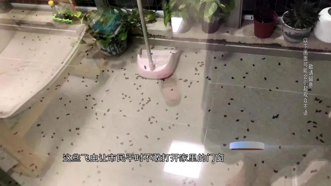 就是这些飞虫让市民烦恼不已,市民王先生说,从5月底它们就开始大规模进驻,特别是傍晚,一旦打开门窗,满眼都是它。