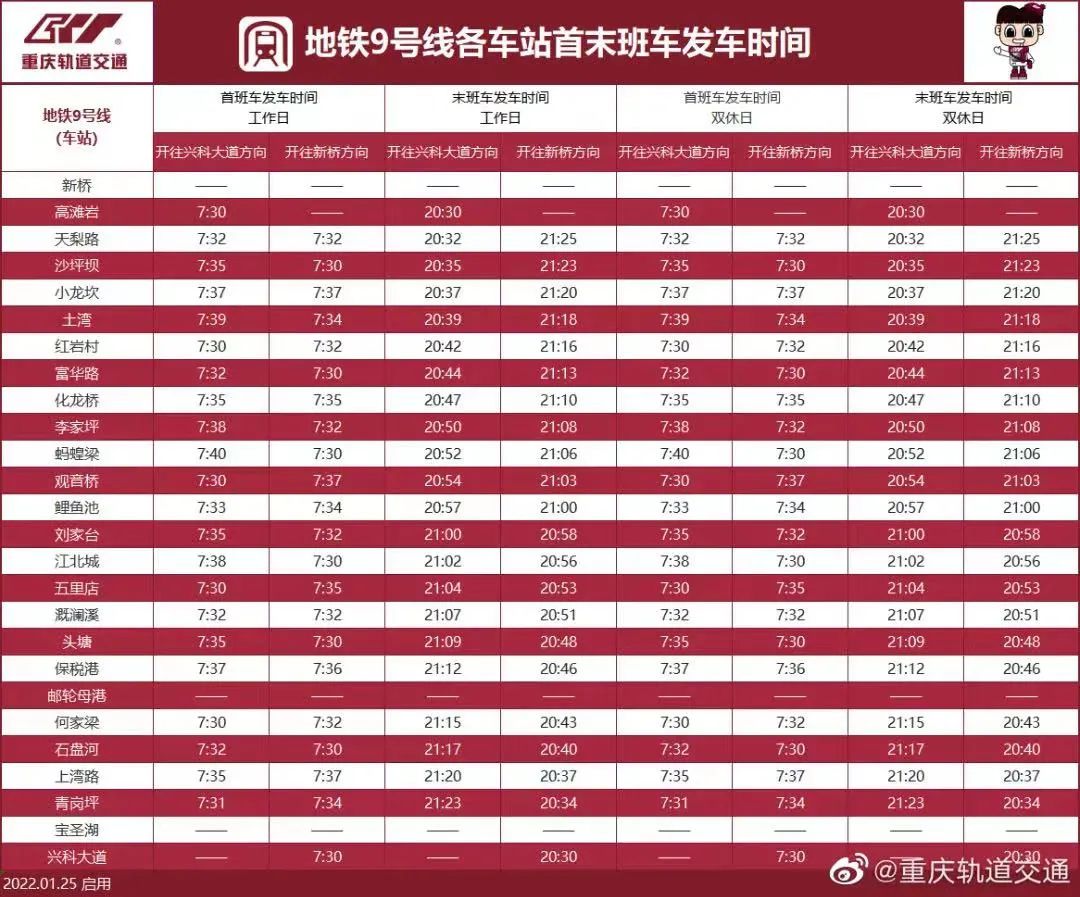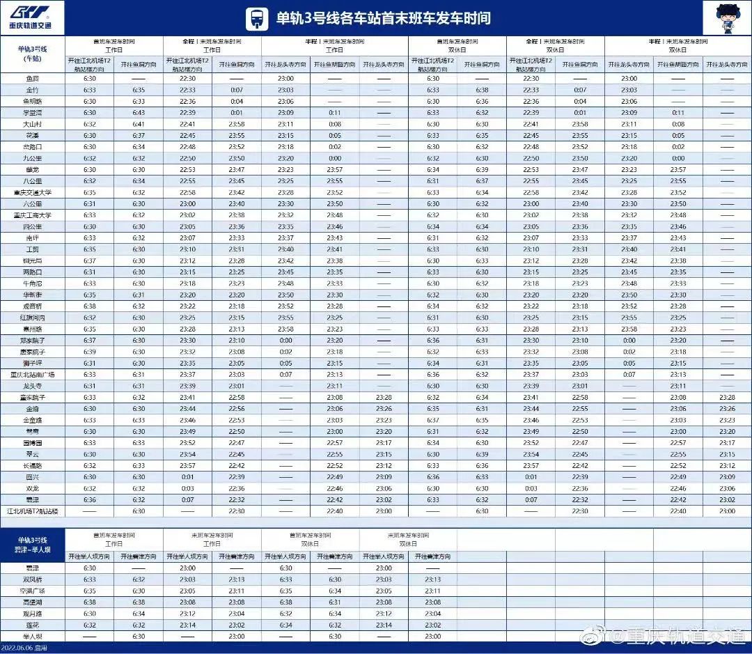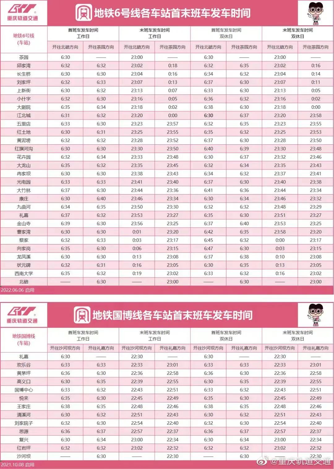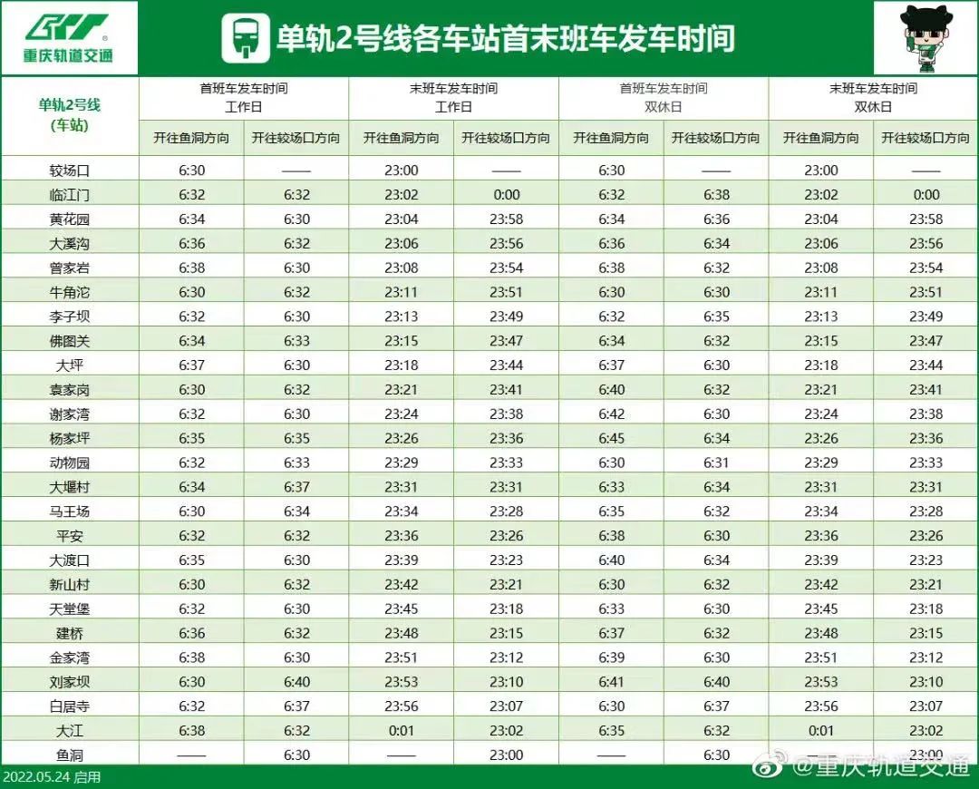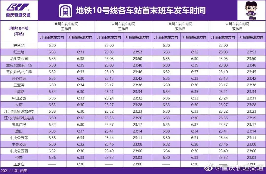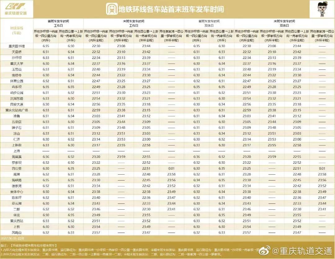 方便不止于此,重庆轨道交通最新运营时刻表也来啦!一起往下看吧。