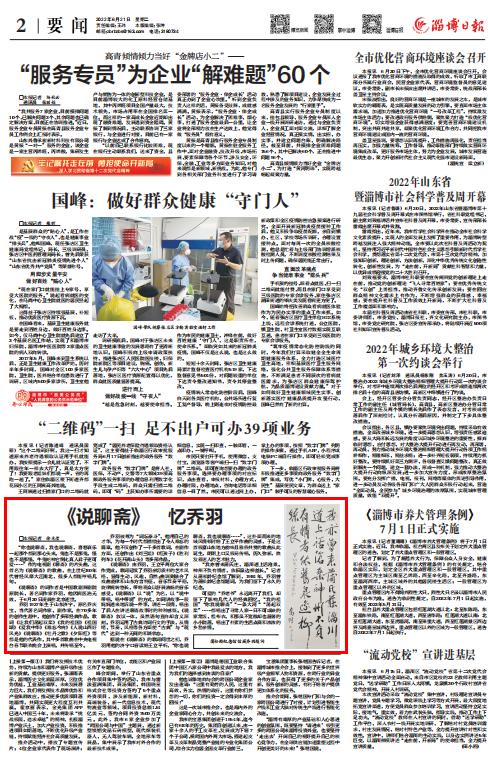 “我亦曾来蒲氏庄,淄川道上话沧桑。神州不负有情者,依旧泉边柳丝长。”记者从蒲松龄纪念馆了解到,1984年,乔羽曾为蒲松龄纪念馆题词,为我们留下了永久的纪念。