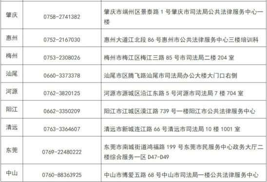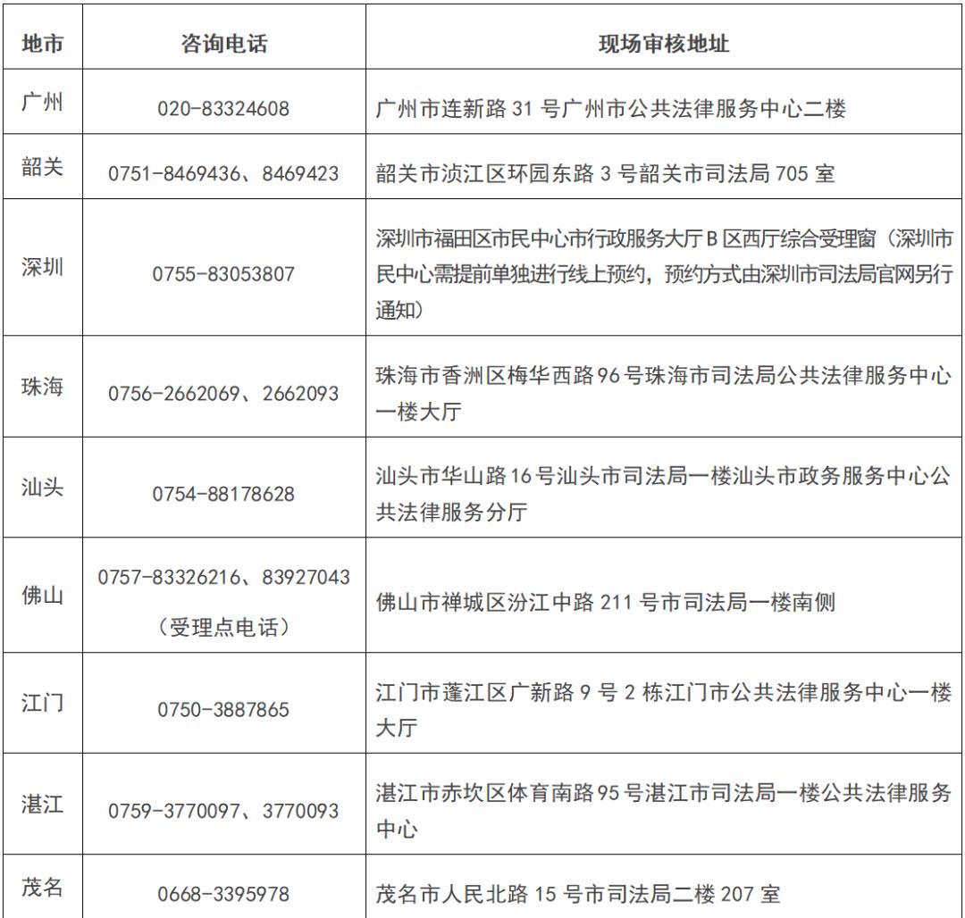 四、各地司法局咨询电话及现场审核地址