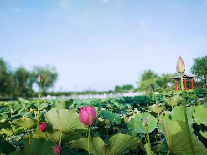 盛夏时节,隆兴别苑的荷花竞相开放,繁花似锦,微风吹过,一朵朵亭亭玉立的荷花,高低起伏、姿态万千。古香古色的建筑、精工雕刻的石刻群、环山而绕的游步道......好一幅古典气韵的山水字画。