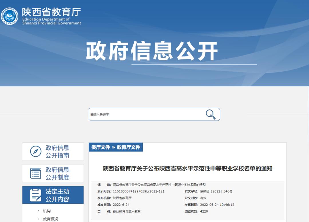 原标题:《陕西省高水平示范性中等职业学校名单公布》