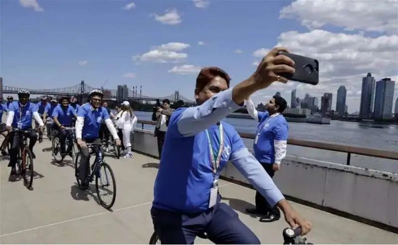 ▲2019年世界自行车日,在联合国纽约总部举办的骑行活动
