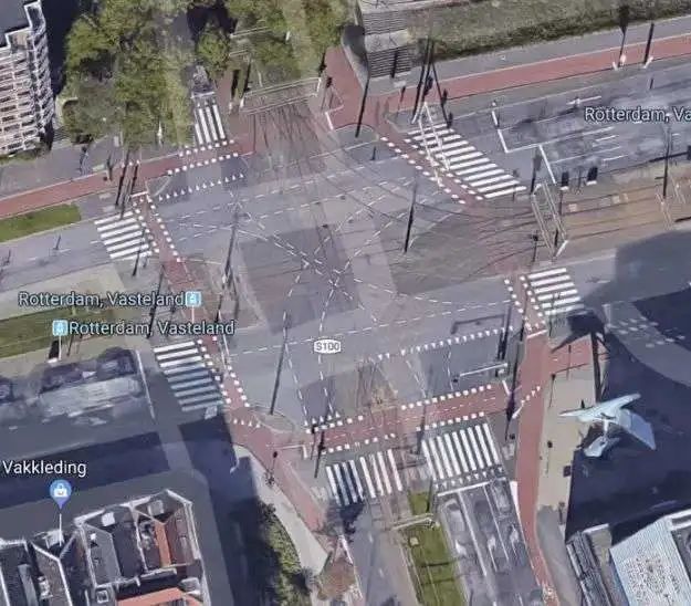 ▲荷兰特色交叉口,自行车过街与其他交通方式彼此分离,可以更好地保障行人的安全