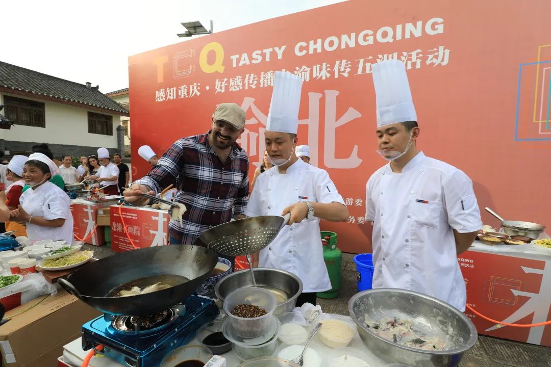 滑嫩绵软的洛碛“水上漂”豆花、散发着浓郁乡愁的大盛白岩老腊肉、麻辣鲜香的玉峰山镇花椒鸡、“麻上头、辣过瘾”的渝北水煮鱼……当天,来自大盛镇、木耳镇、洛碛镇、古路镇等11个乡镇的大厨代表们现场比拼,运用煎炒、清蒸、红烧、火爆等渝菜的“十八般武艺”,将渝北特色美食的诀窍展示得淋漓尽致,在鲜汁迸发中讲好美食背后的渝北故事。