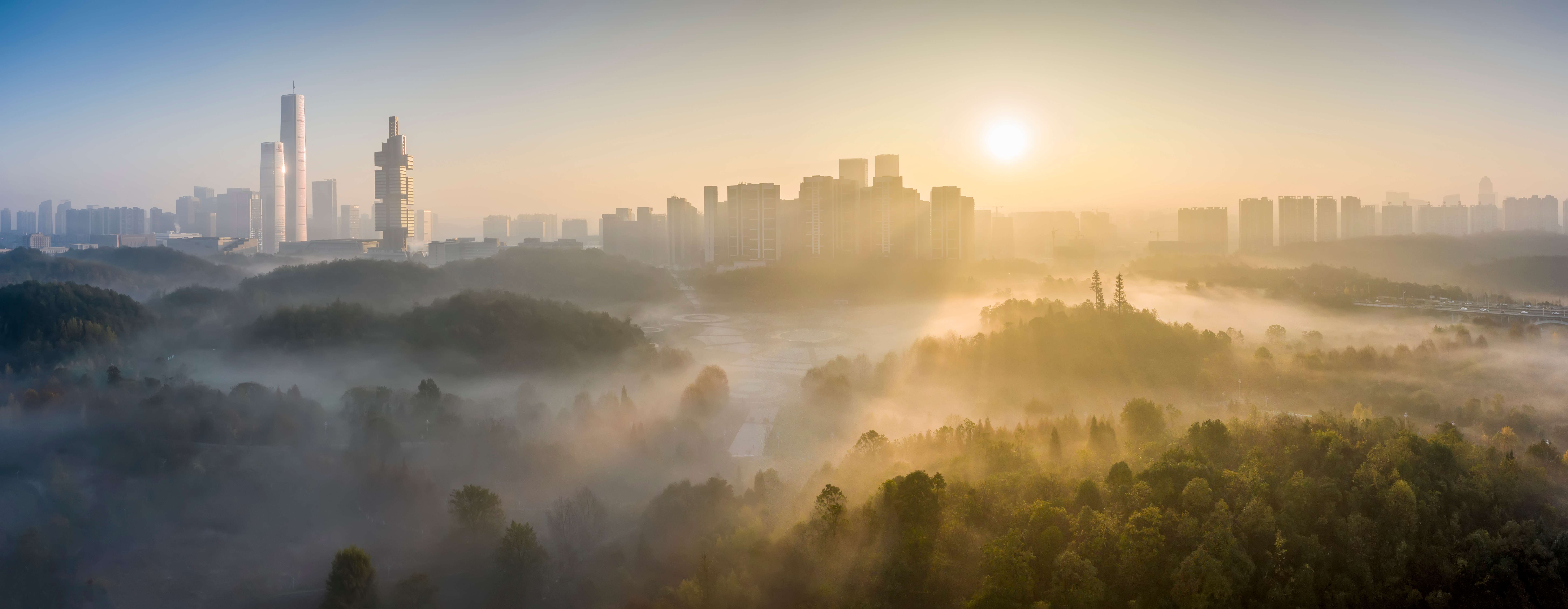 远眺晨光中的贵州金融城 资料图