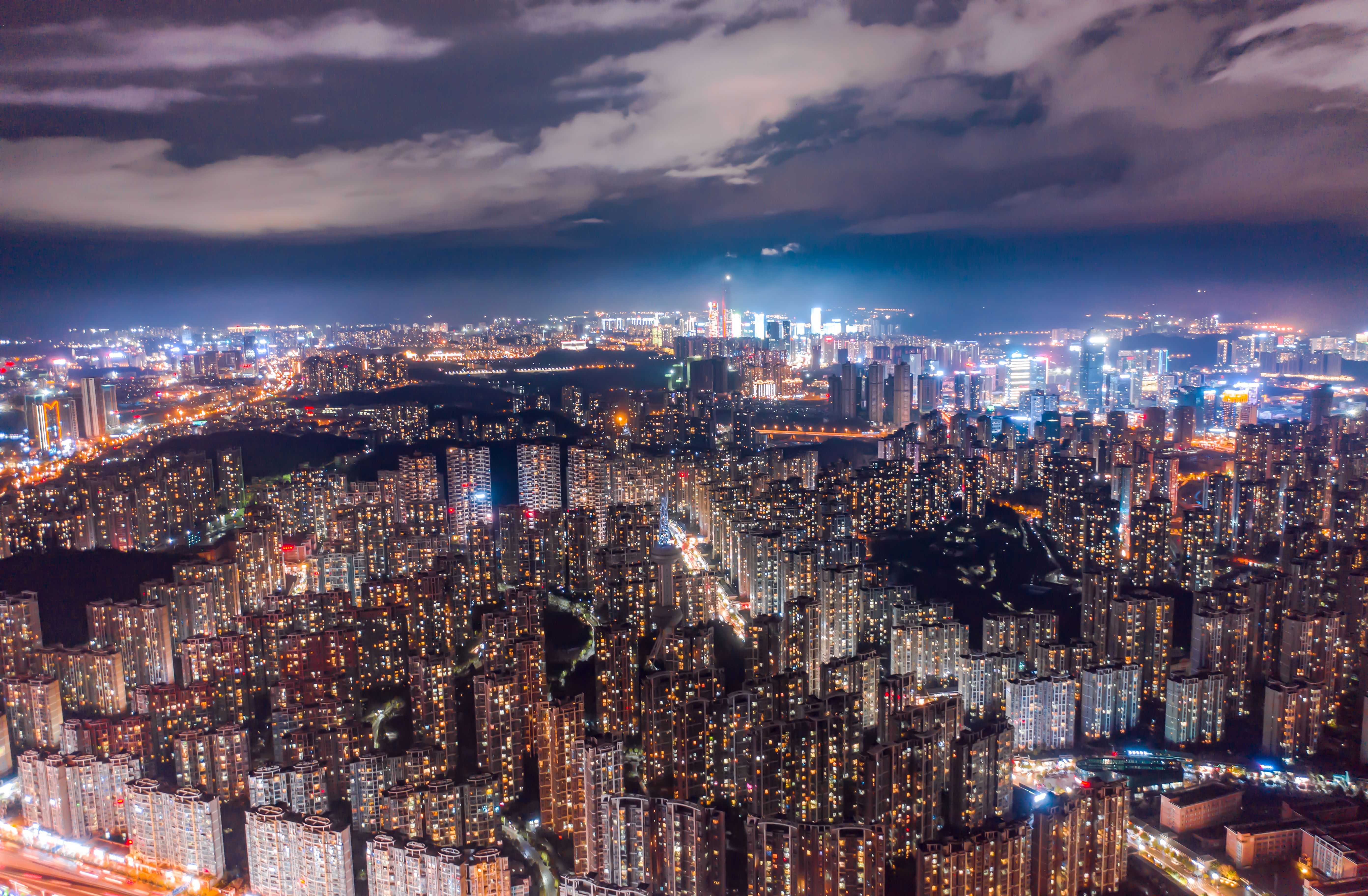 夜幕下的观山湖区楼宇 资料图