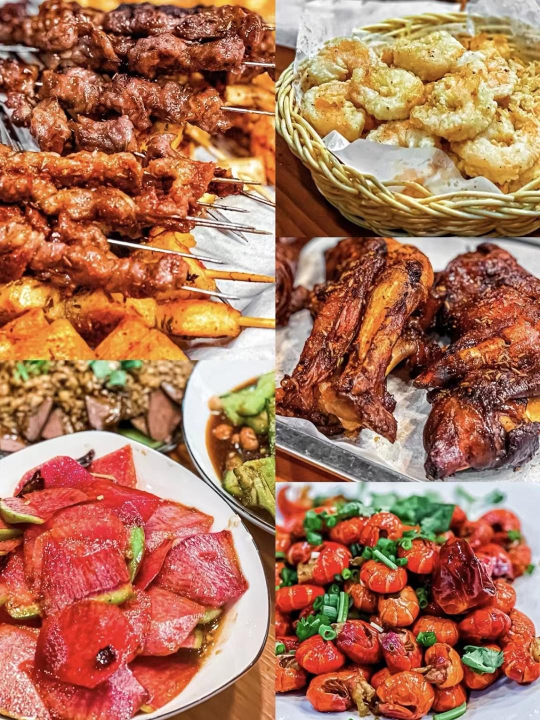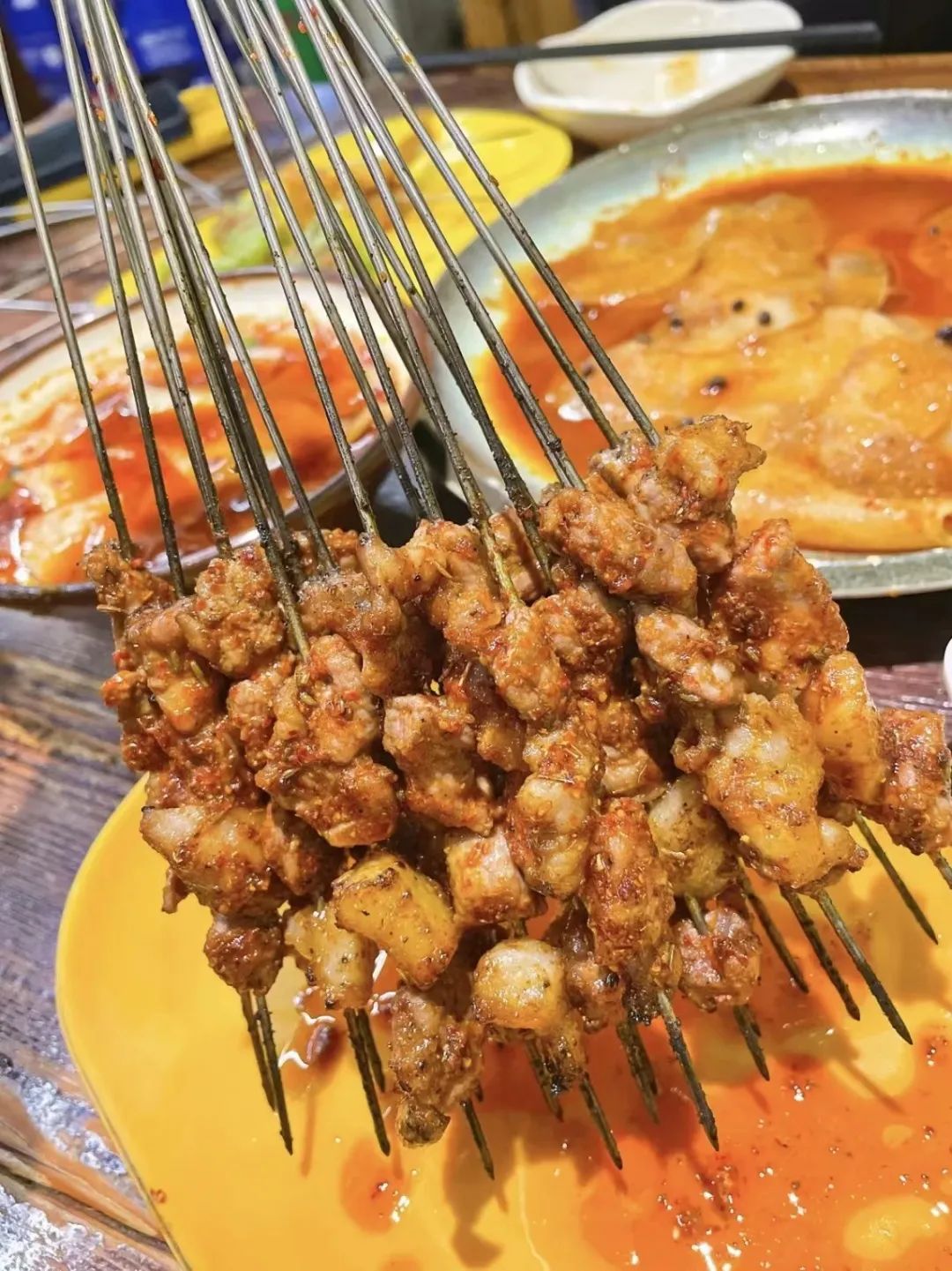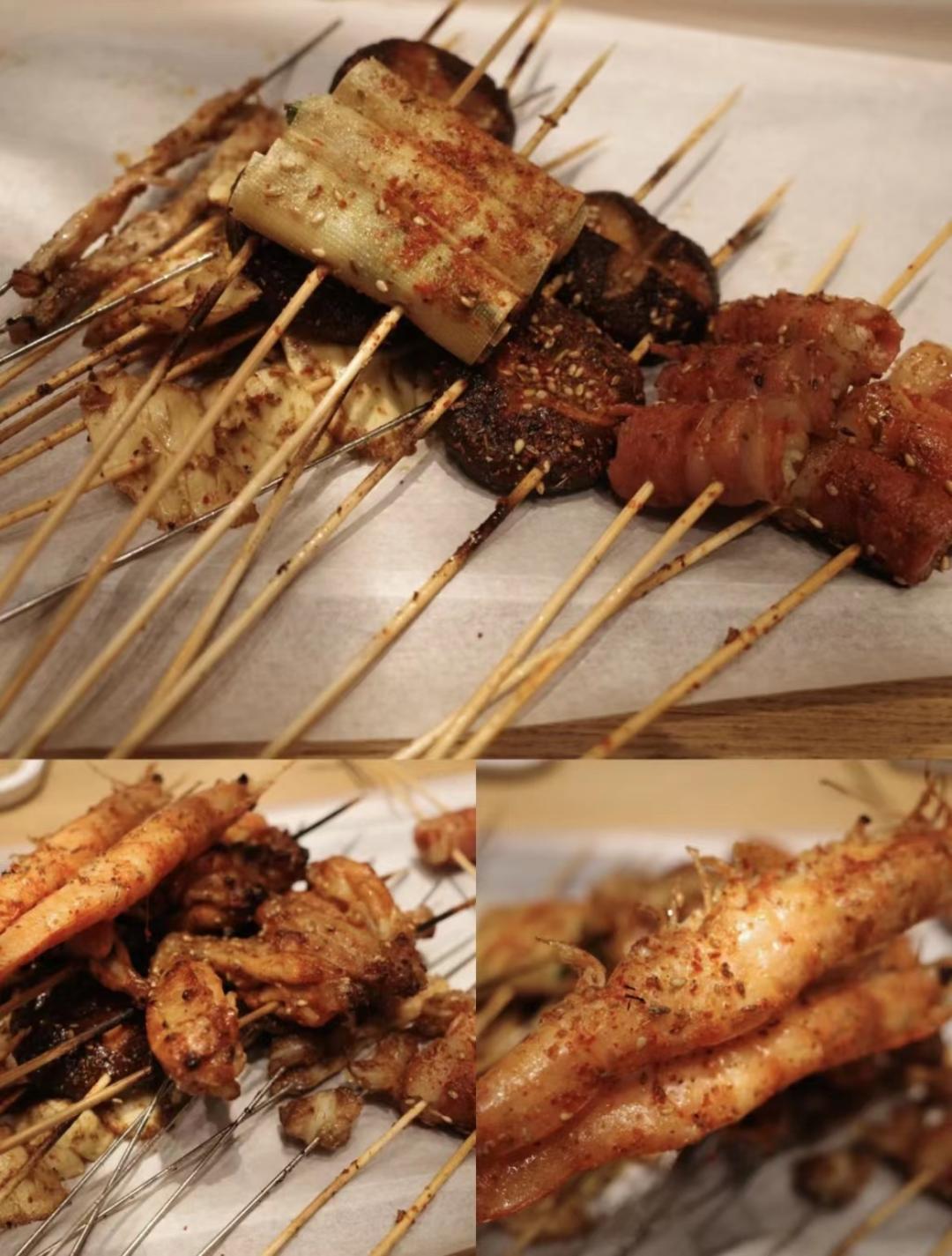 还有“烤五花肉”、“烤把把鱿鱼”、“烤签签玉米”、“烤韭菜”等等,地道的川渝口味,绝对能让爱吃烧烤又爱吃辣的你吃个爽~