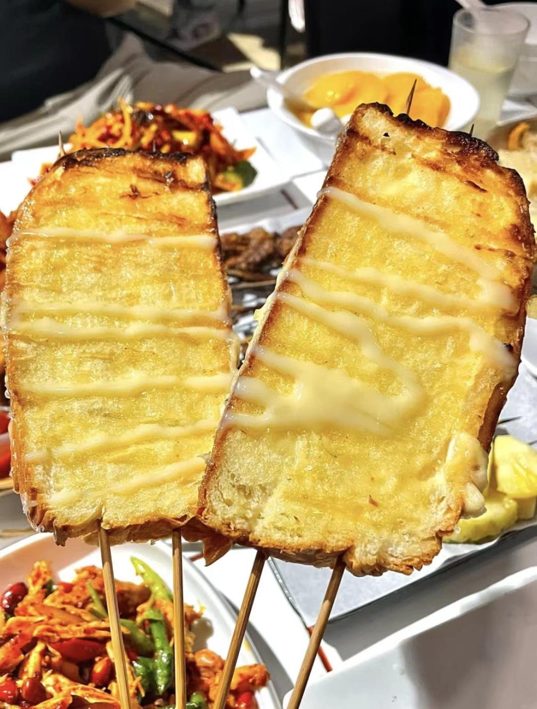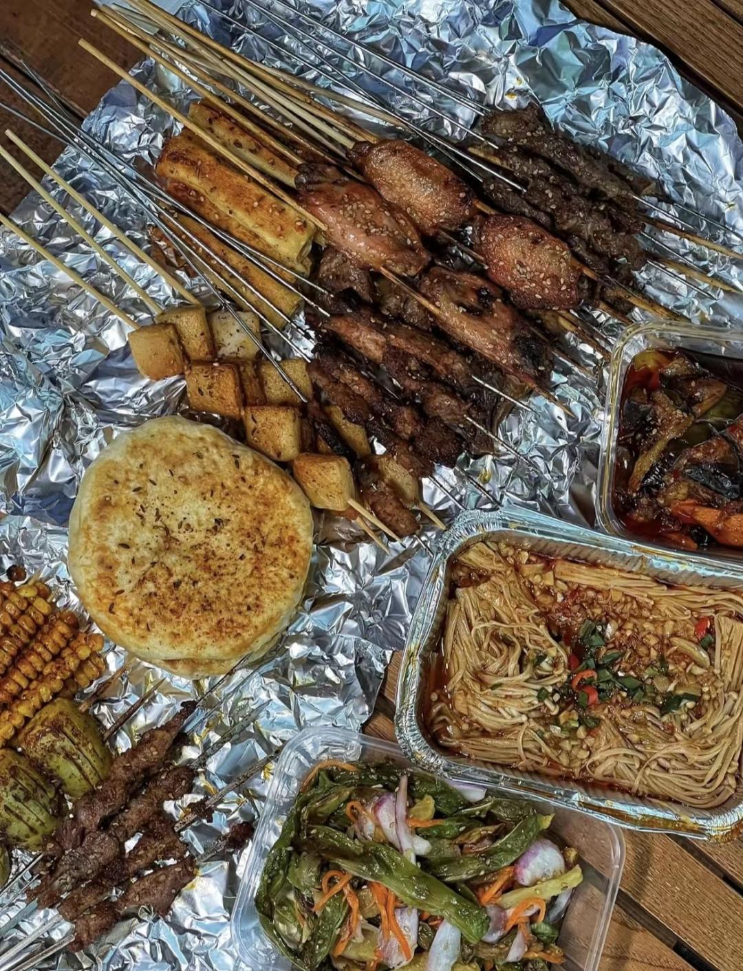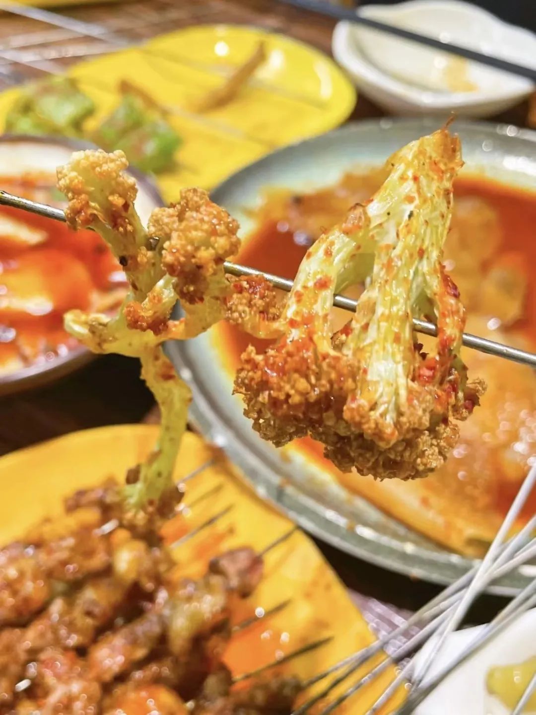 还有“烤五花肉”、“烤把把鱿鱼”、“烤签签玉米”、“烤韭菜”等等,地道的川渝口味,绝对能让爱吃烧烤又爱吃辣的你吃个爽~