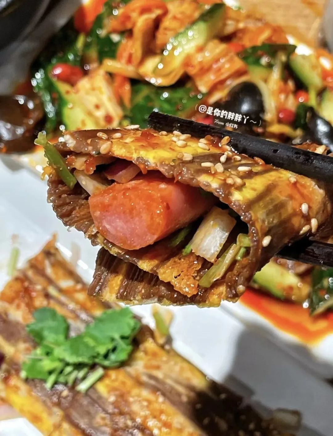 “东北特色实蛋”、“五花肉”、“腊八蒜烤肥肠”、“烤菜卷”等,不用犹豫,都好吃!