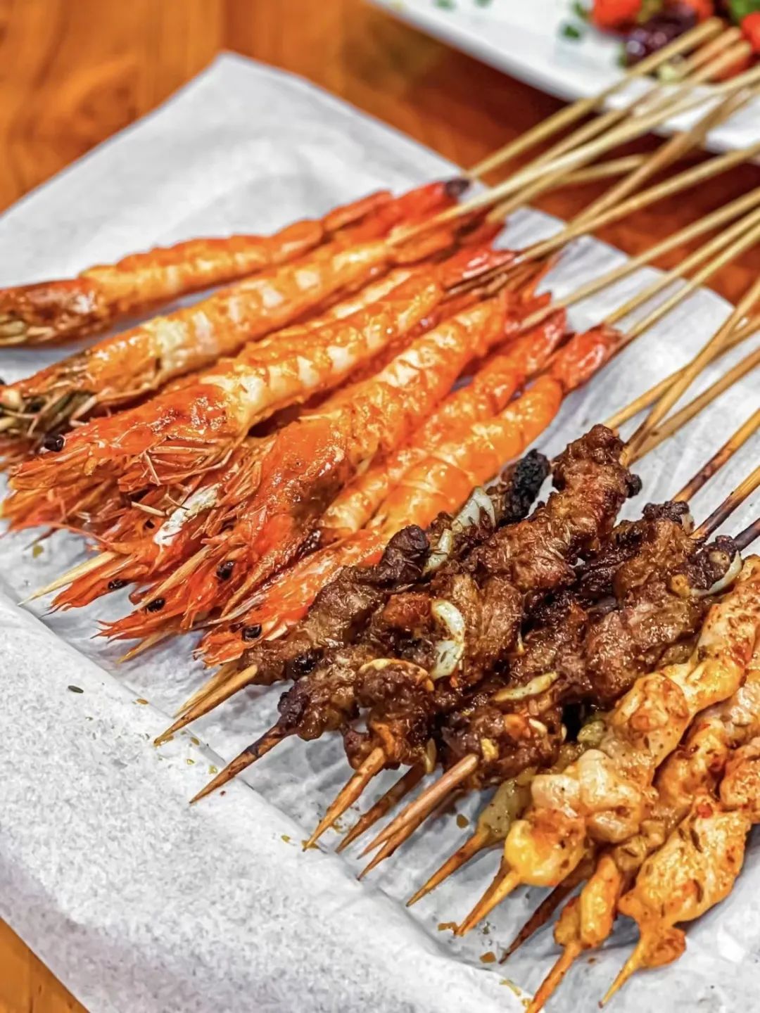 “烤羊肉串”、“生蚝”等是常规操作,“小把串”、“烤甜牛肋条”排得明明白白,肉质都很嫩,配上秘制小料,鲜香到停不下来。