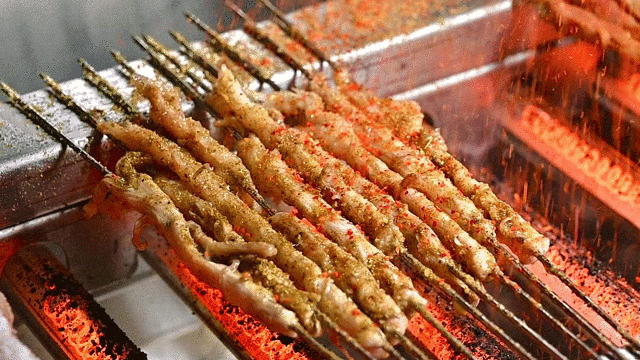 “烤鸡脚筋”、“香脆葱肠”、“烤乳饼”......还有各种奇葩重口味的“虫子盛宴”,馋这一口的可以来尝尝~