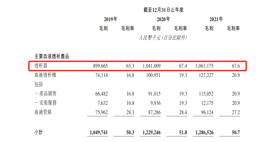 透析器毛利率高达67.6%