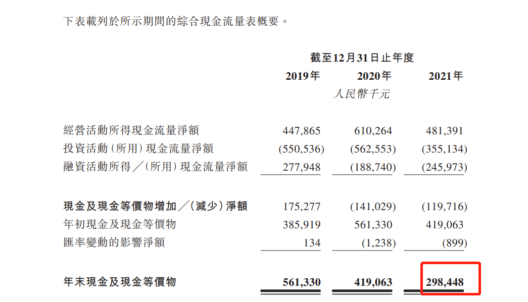而截至2021年12月31日,威高血液净化年末现金及现金等价物则为2.98亿元。