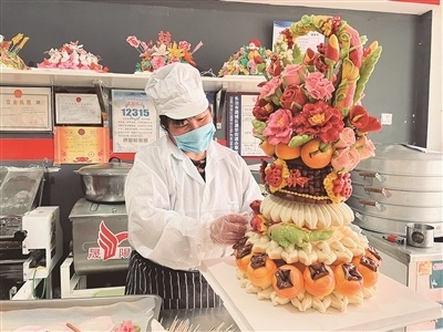 看着面前精美别致的花馍,前来取货的赵景芳眼中流露出难以抑制的惊喜之情:“这是给我奶奶庆祝八十大寿订做的寿馍,听说咱这儿的花馍是绿色纯天然的,蔬菜水果打汁,非常健康,而且造型独特,寓意也好,比蛋糕更有新意……”