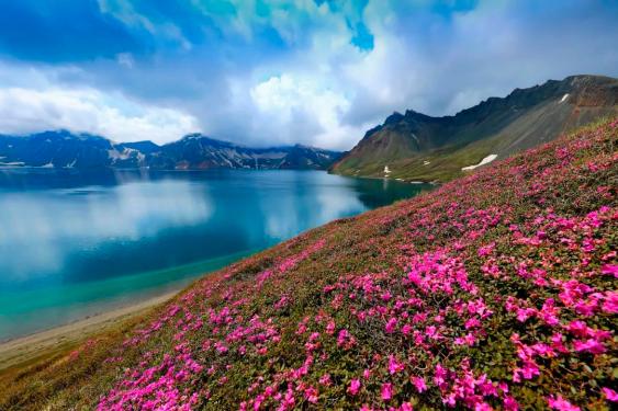 入夏后天池美轮美奂,池水澄澈如蓝天,没有了云雾的干扰能见到全貌的几率很高。7-8月高山上的野花竞相开放,连绵成大片花海,运气好还能看到小松鼠这类的野生动物,因此长白山被《纽约时报》评为一生必去的旅行地之一。
