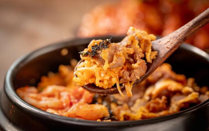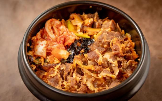 烤牛肉拌饭是店里的招牌,米饭软糯、锅巴焦脆喷香,混合各式蔬菜和拌饭酱,吃起来超级满足。
